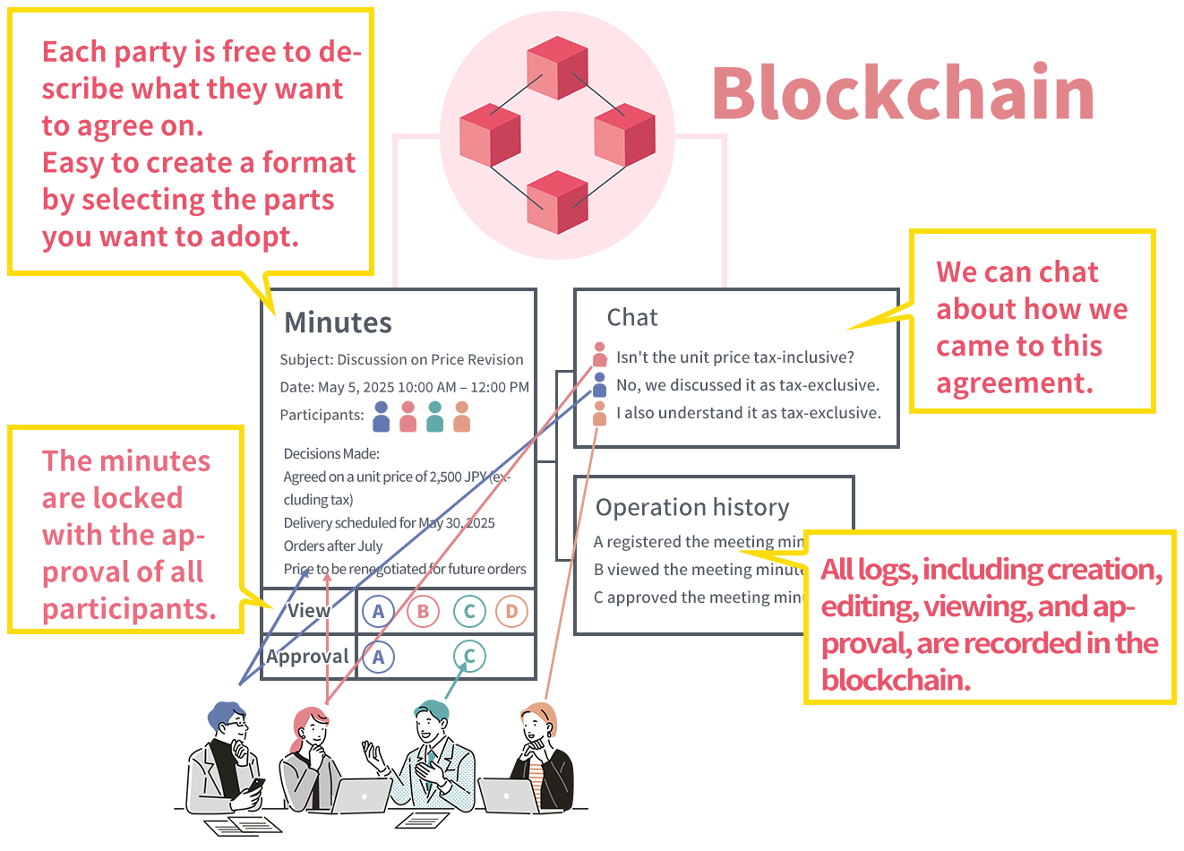 The process and conclusions leading to an agreement are recorded in an unalterable blockchain to avoid problems and speed up the decision-making process!!