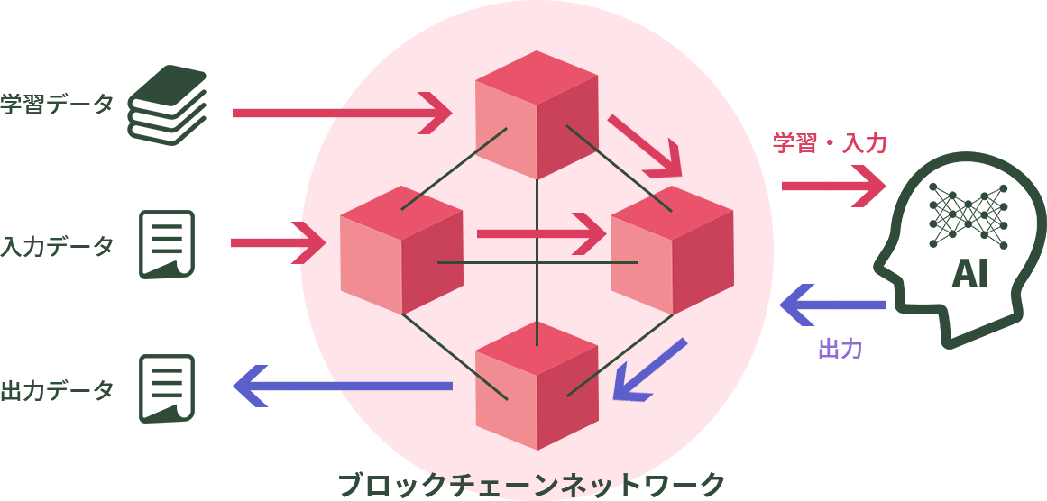 AIへの学習や判断に使用するデータをブロックチェーンに記録し、ブロックチェーンを介してデータを取得することで改ざんを防止することができます。