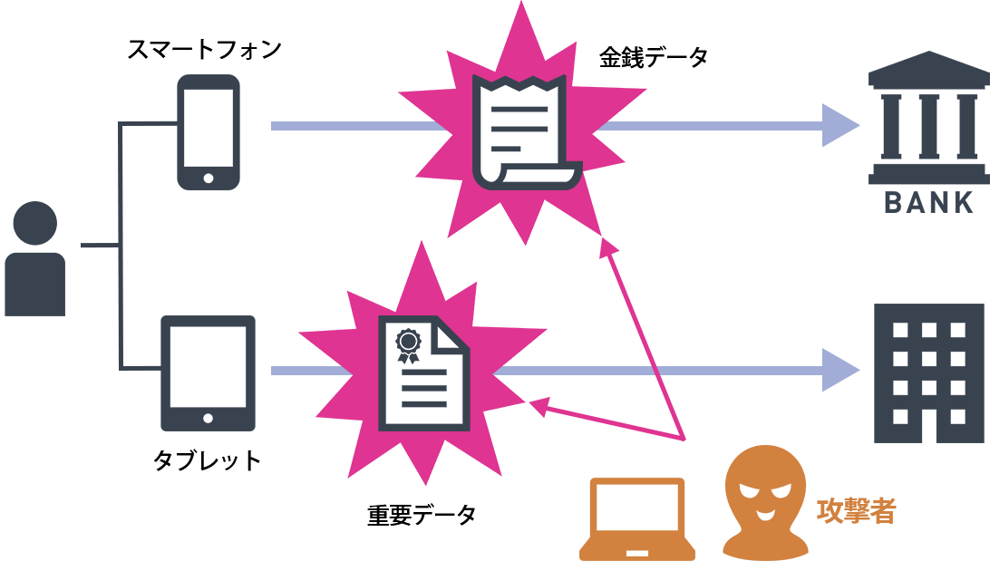 特にモバイル端末では各種の認証を行うため個人情報漏洩等のリスクが増大してしまいます。