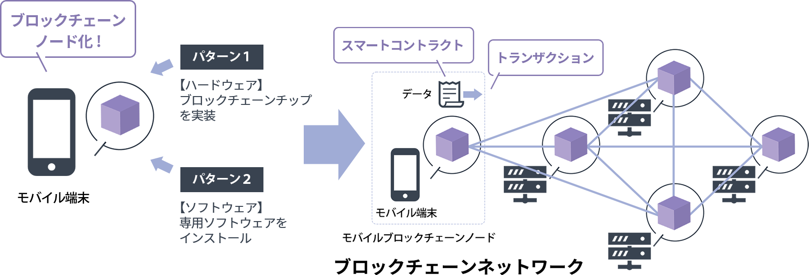モバイルブロックチェーンノードを実装することで、モバイル端末自体がブロックチェーンノードとして機能し、その送信データはブロックチェーンネットワークによって安全に守られ、ハッキング等による漏洩やデータ改ざんから回避できます。