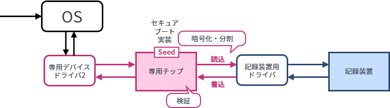 専用チップとして提供するタイプで、端末内または外付けストレージやメモリの装置内に設置します。