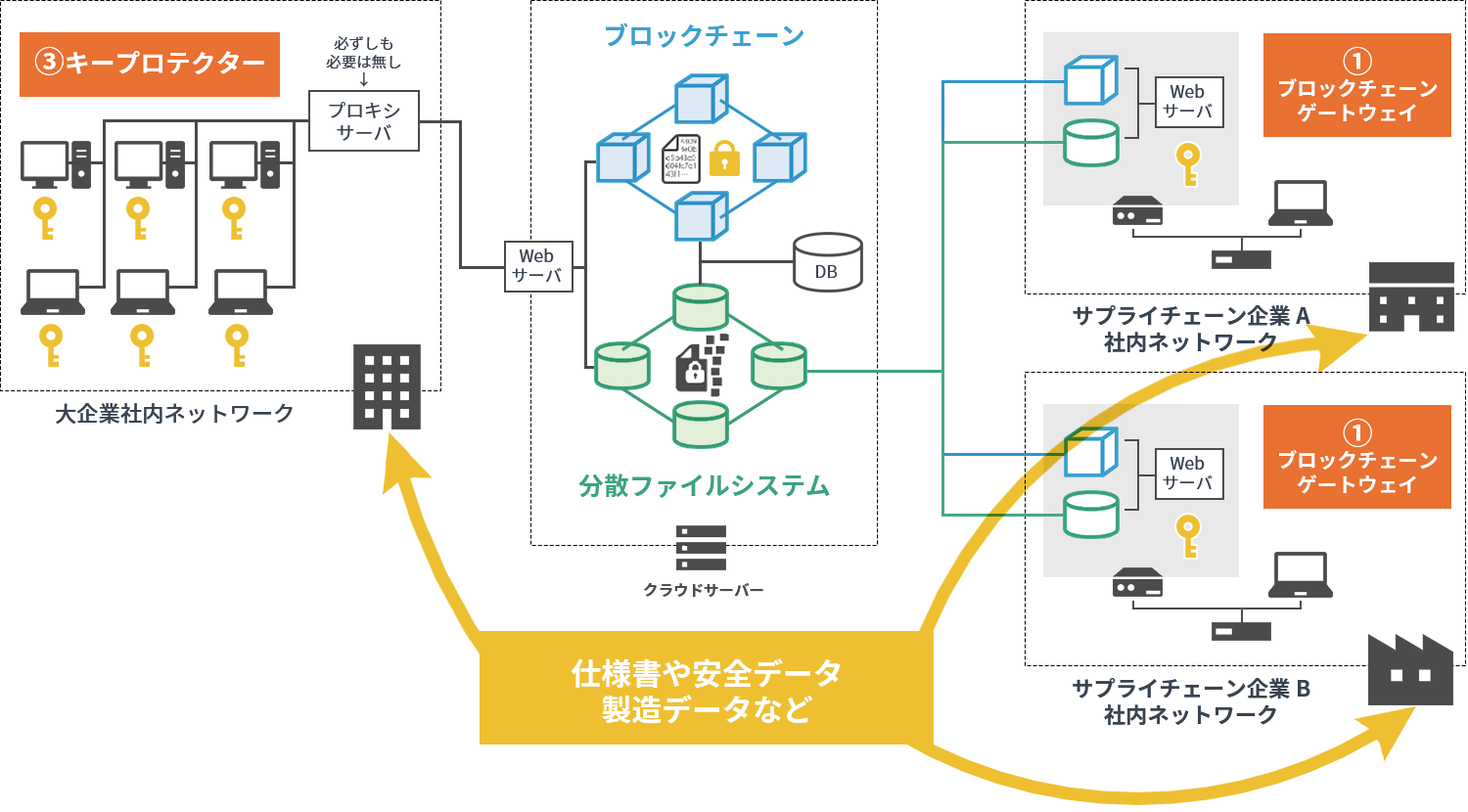 その場合は、対象企業にブロックチェーンゲートウェイ端末を設置するだけで、ITセキュリティ担当者がいなくとも、サプライチェーン間でのセキュリティリスクを軽減できます。